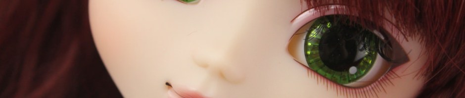Rose has a really nice face up! Her eye make up is pretty similar to Pullip Fox‘s in style though the colors are different. I love the little bit of pink eye shadow she has, it works really nice with the colors of her eye make up and the green eyes offer a striking contrast to it. Her lips are gradient, it’s more pronounced on the lower lip though it is present on both with a deep shade of crimson in the center changing into a more subdued rosy pink on the sides. She has nice eyebrows.