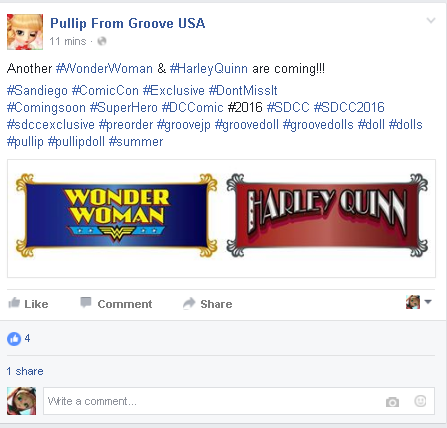 This year’s SDCC exclusive Pullips will be another collaboration with DC Comics, new versions of Pullips Harley Quinn and Wonder Woman will be released. In 2012 Pullip Wonder Woman was released as one of two SDCC releases that year alongside Taeyang Batman, later that same year at NYCC Pullip Harley Quinn was released.