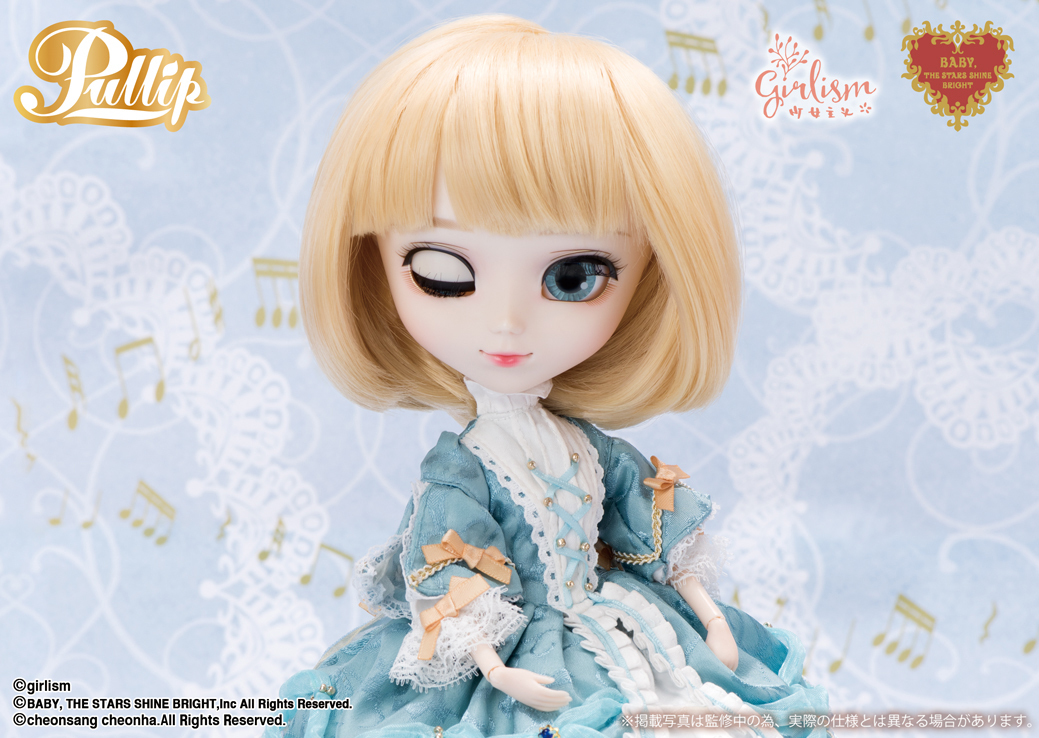 Awww Pullip Eileen is quite the cute release! I absolutely love everything about her! She is quite exquisitely detailed and I think the musical note motif by her hemline is perhaps the most darling thing ever. I absolutely love her color scheme too, the danube blue is quite refreshing can’t imagine how cloyingly sweet it would look in like pepto-bismal pink bleh.