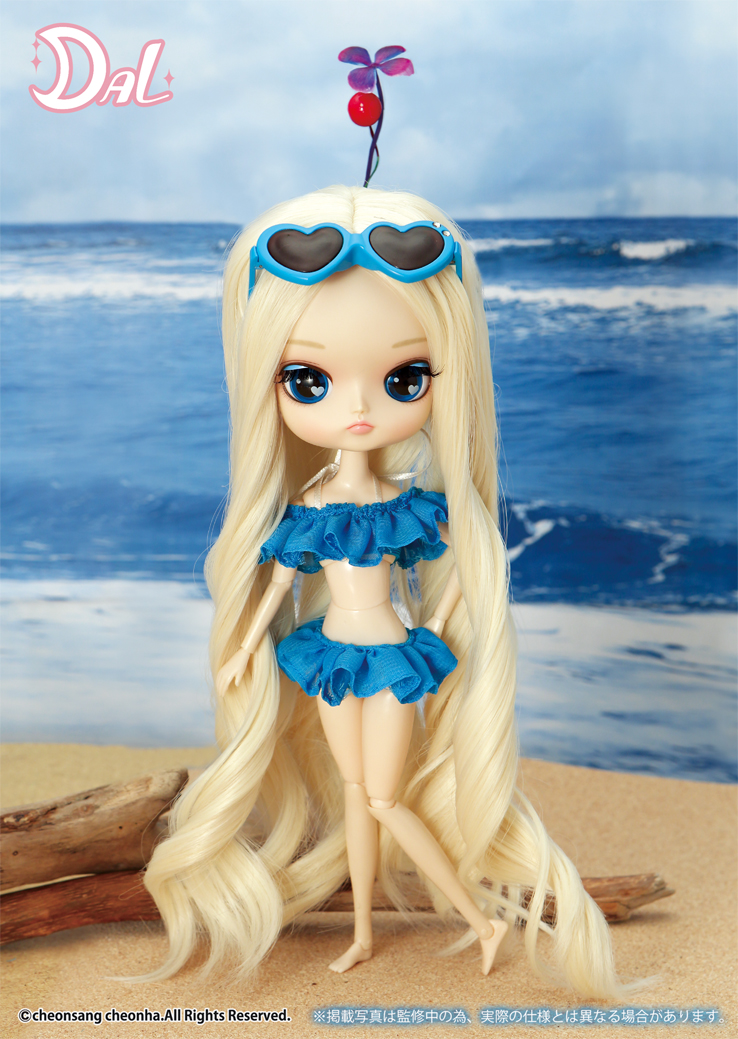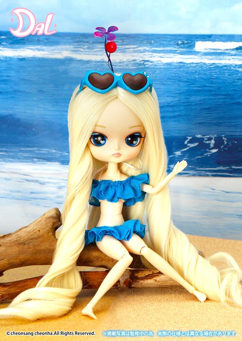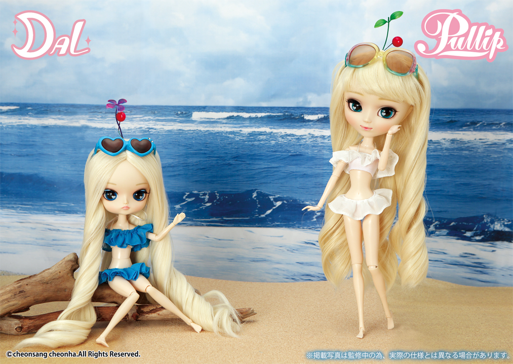 In late summer 2016, Groove released Pullip ha-ha and Dal ho-ho side by side. Both dolls had a swimsuit theme and came with cover-up outfits in addition to their bikinis! Both dolls also came with a small float.