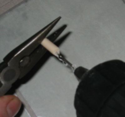 2. Select a drill bit that is slightly smaller than your paper clip. Drill up into the shaft where the break occurred–NOT in the middle.