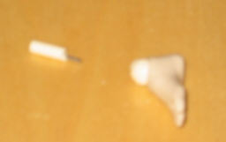 4. Seperate the broken ball joint from the foot if you haven’t already. Cut a length of paper clip and tap it into the hole you drilled in the shaft. If you need to trim it down before you put the ball joint on, go ahead.