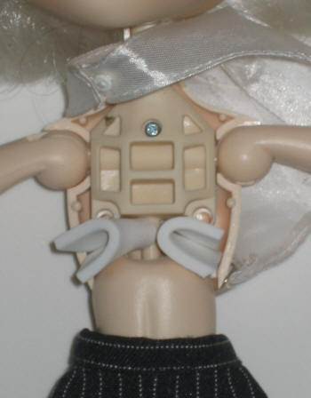 1. Take off the chest plate. You won’t even need to remove the head, it’ll pop right off. While we’re at it, isn’t that a wonderful skintone match? Better than the stock body she came with.