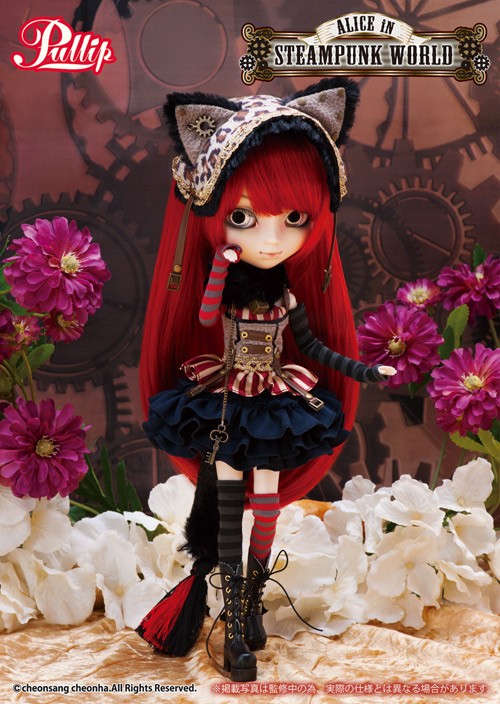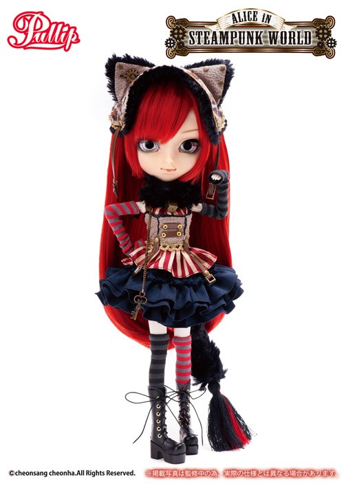 Special Notes: Pullip Cheshire Cat in Steampunk World is the first Pullip to debut a new eye mechanism feature that allows a new partially open eyelid position instead of just fully open or closed.
