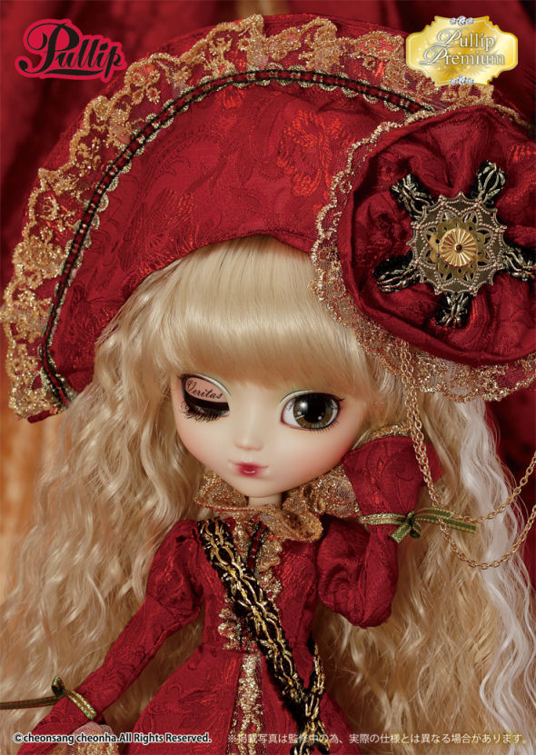 Groove started a new series of dolls called Pullip Premium where past popular models are remade in new versions with different outfit, colors and pattern in 2016. Pullip Veritas Deep Crimson Version is based on the iconic Pullip Veritas who was released in 2007. Pullip Veritas Deep Crimson Version was the third doll released as a part of the line, a Limited Edition of Veritas where she had a black outfit and a mocha skintone was teased and later released by Pullip.net but limited to only 50; a lot of fans were upset that version was not given a wider release.