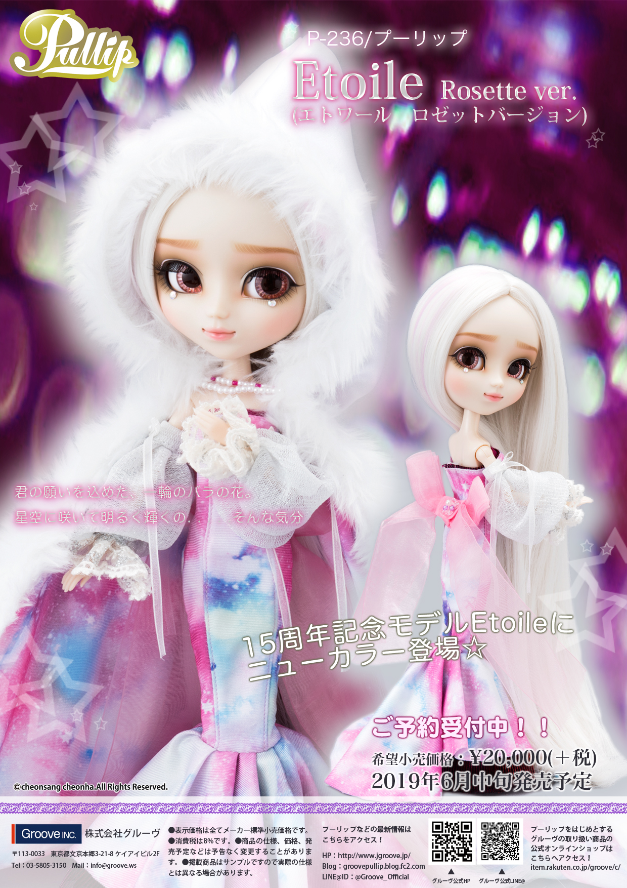 Pullip Etoile Rosette Version is a recolored version of Pullip Etoile who was released in 2018 to commererate the 15th anniversary of Pullip. A third darker variation of Pullip Etoile called Pullip Etoile Undomiel Version is set to release later in 2019. Pullip Etoile Rosette Version was released in June of 2019.