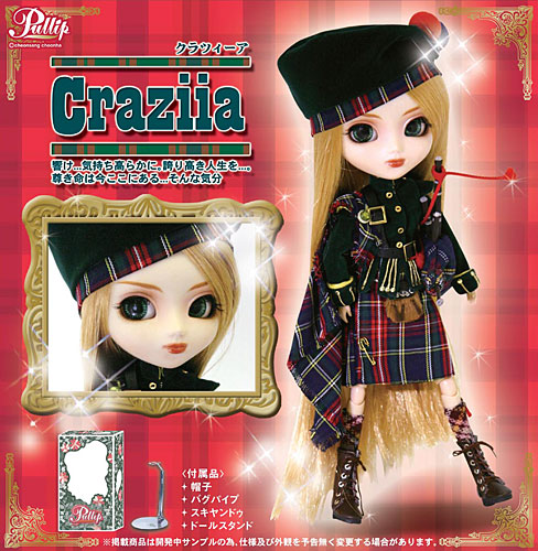Pullip Craziia was released by Jun Planning in July of 2006, she is wearing the traditional Scottish highland dress. Three years later Taeyang Andrew would be released with a similar theme. In 2010 a Little Pullip+ was released based on Pullip Craziia.