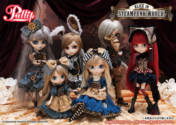 Taeyang Dodo in Steampunk World, Dal Alice in Steampunk world, Pullip Alice in Steampunk World, Isul White Rabbit in Steampunk World and Pullip Mad Hatter in Steampunk World.
