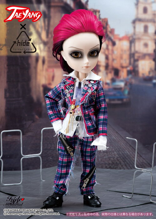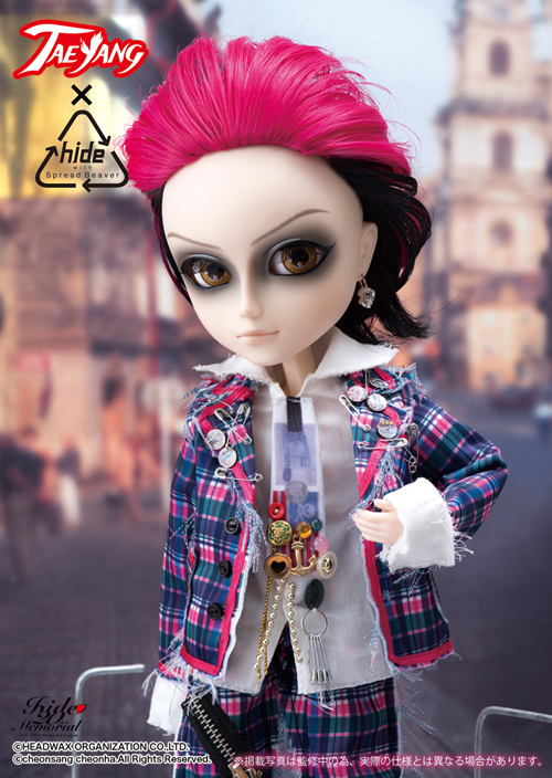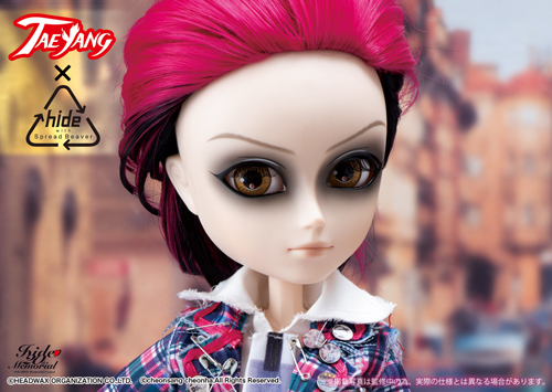 In 2012, Groove released three different Taeyang dolls as well as a limited edition variant of one of the dolls based on hide’s likeness. The Taeyang dolls were all based on some of hide’s different, iconic looks from over the years: hide Doubt version (as well as the limited version of hide Doubt version) were based on how he appeared in the music video for Doubt off of his first solo album “Hide Your Face” , hide rocket dive version is based off of hide with Spread Beaver’s 1st single ”ROCKET DIVE” and finally hide PSYENCE version based on hide’s appearance during the PSYENCE a Go Go tour.