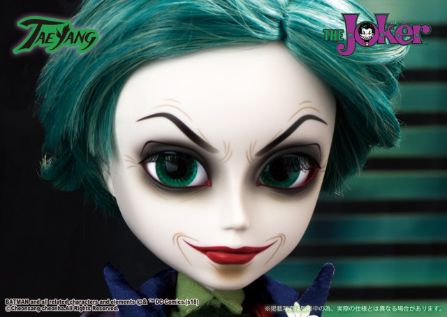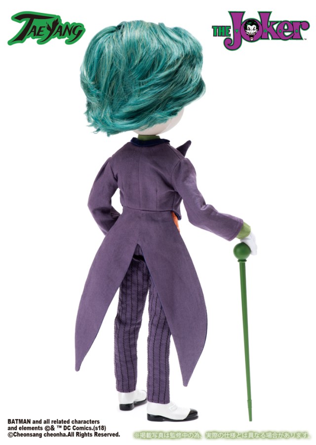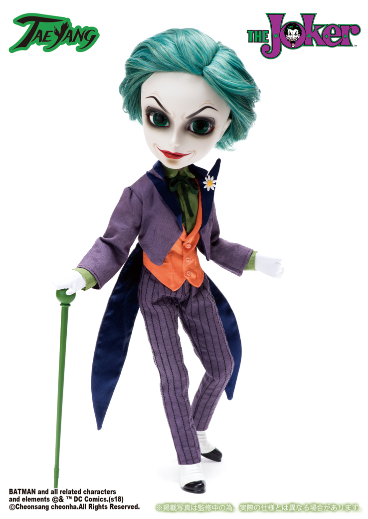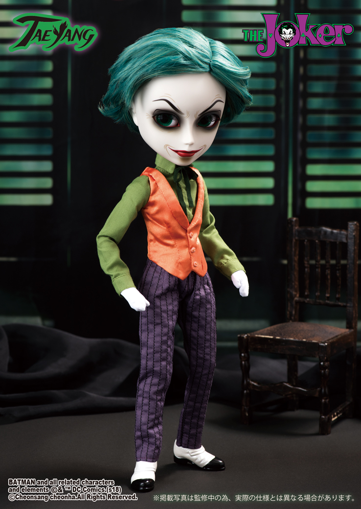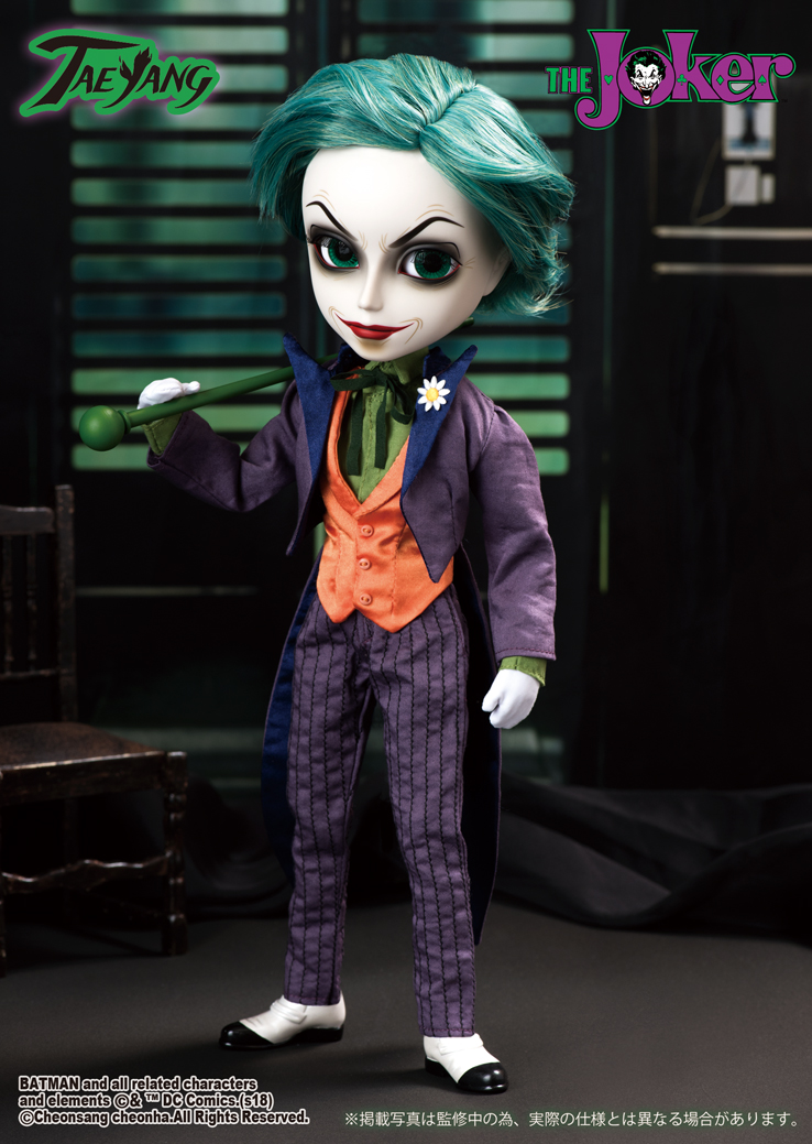 Released in July of 2018 to coincide with SDCC, Taeyang Joker was released as a part of the long-running DC Comics x Pullip collaboration series; Joker joins already released Pullip Harley Quinn, Pullip Harley Quinn Dress Version, Pullip Batgirl SDCC Version, Pullip Batgirl WF Version, Pullip Supergirl, Pullip Wonder Woman, Pullip Wonder Woman Dress Version, Pullip Catwoman SDCC Version, Pullip Wonder Woman WF Version and Taeyang Batman.